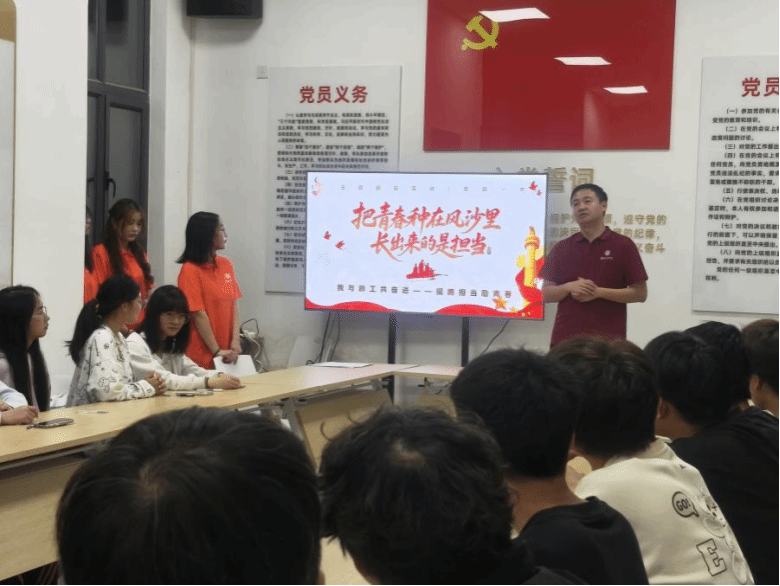 2025年10月12日,经济与管理学院土管202501团支部在榴园1号楼党团活动室,成功开展“把青春种在风沙里,长出来的是担当”主题团日活动。学院学工办主任侯骏豪、辅导员杨婷、学生宣讲团成员及支部全体同学共同参与。