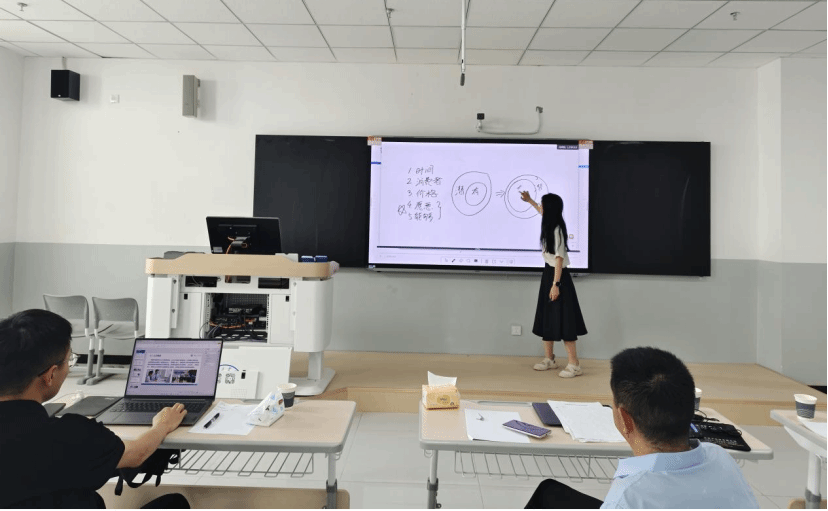 在教学展示环节,三位教师分别把自己的教学设计、教学理念、思政融入和课程反思做了分享。学院负责人霍远教授从教学方法、案例运用、课堂管理等多个方面进行专业指导,不仅针对性地指出改进方向,还通过现场示范教学,生动展示了如何将理论知识与实际案例有机结合。