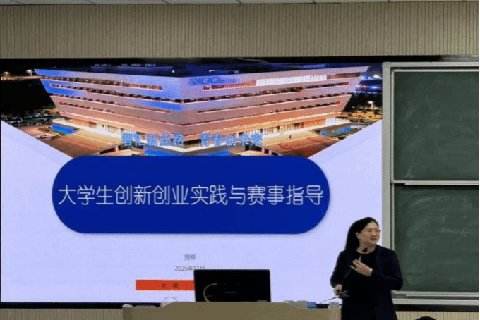 为助力学院学子深耕双创实践、提升赛事竞争力,2025年11月11至12日,学院举办“大学生创新创业实践与赛事指导”专题讲座,特邀国家级双创导师贺婷老师主讲。本次活动由学院学办主任侯骏豪主持,学院副院长汪全勇、学院党委副书记赵海伟、辅导员、班主任及学院全体学生参加。